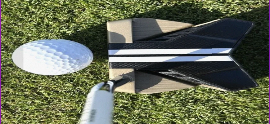 Upon unboxing, the putter’s aesthetics immediately impressed me. While perhaps a slight personal bias, I particularly appreciate a winged mallet design. Its prominent alignment aid, encompassing most of the ball, promises straightforward aiming.